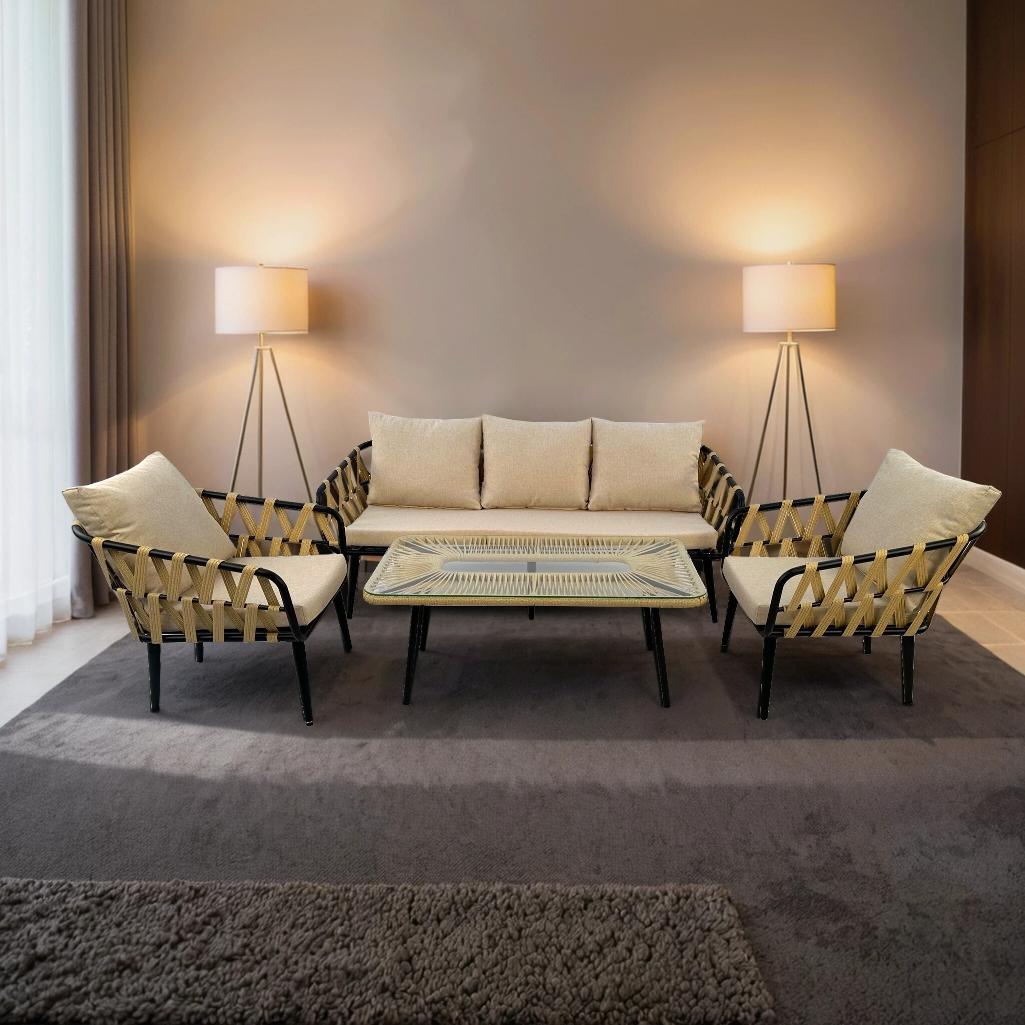 Комплект LIMA (2 кресла, диван 3-местный, стол журнальный) - купить по цене 67 560 ₽ в интернет-магазине ALFART | Быстрая доставка